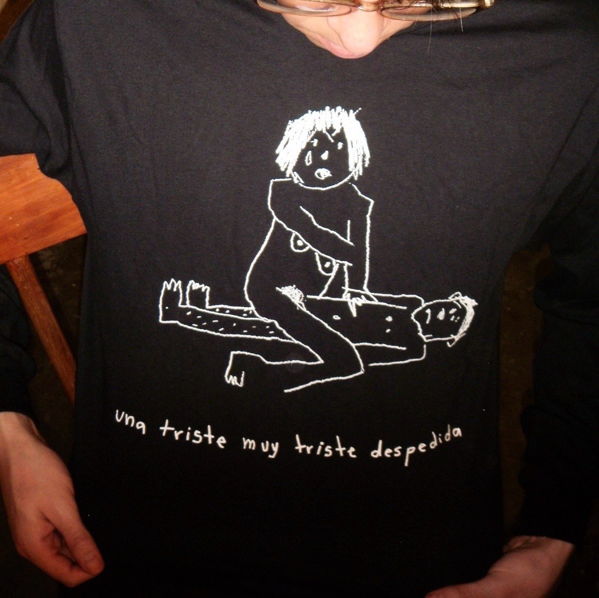 Playera negra de manga larga con dibujo triste impreso en serigrafía 3
